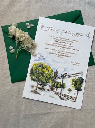 Son invitaciones personalizadas con ilustraciones en acuarela, para poder reflejar vuestra esencia y personalidad. Realizo la ilustración completamente a mano en papel con acuarelas y posteriormente la digitalizo para realizar el diseño de la invitación. Así tendríamos la invitación digital para mandarla a la imprenta. Preguntar precio y dudas sin compromiso. Mi instagram @AMAPOLA_ILUSTRACIONES_RT
