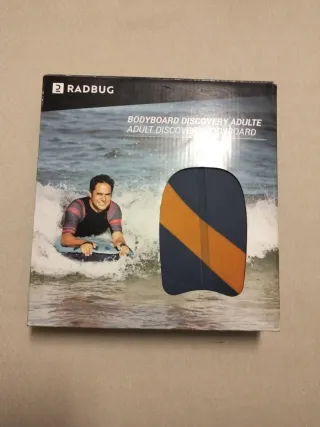 Tabla de bodyboard Radbug Discovery para adultos. Ideal para disfrutar del mar. - Diseño con franjas en azul marino y naranja. - Marca: Radbug.