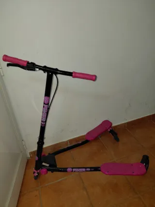 Patinete de dos ruedas con plataforma doble en color rosa y negro. - Manillar ajustable. - Puños de goma para un mejor agarre. - Plataformas antideslizantes.