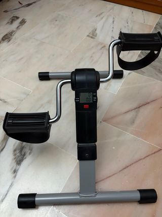 Pedales estáticos compactos para ejercitar piernas y brazos. - Pantalla digital con contador. - Diseño plegable para fácil almacenamiento. - Ideal para uso en casa o la oficina. - Máquina para rehabilitación tras operación de rodilla. - Muy poco uso. Prácticamente nuevo y con su caja.
