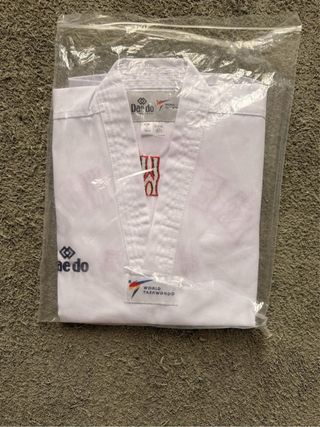 Ropa de Taekwondo de la marca Daedo. - Talla 1 140cm. Kimono a estrenar. Pantalón con poco uso y cinturón a estrenar. - Diseño con texto TAEKWONDO en la espalda. -Tengo anunciado otro de la Talla 3