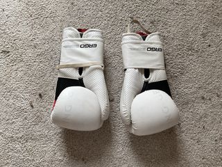 Par de guantes de boxeo de la marca Outshock en color blanco. Diseñados para entrenamiento avanzado. - Cierre de velcro. - Logo de la marca en la correa. - Diseño acolchado.