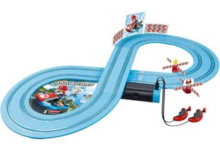 Pista de carreras Carrera FIRST de Mario Kart. Incluye coches y accesorios para jugar. - Pista de 2.4 m (7.87 ft). - Incluye dos coches de Mario Kart. - Mandos para controlar los coches.