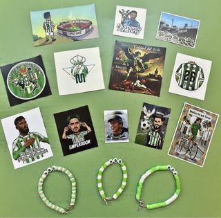 Lote de 12 pegatinas. Incluye diseños variados con el escudo, jugadores y lemas del equipo. Precio por las 12 pegatinas 3€ - Pulseras con cuentas de colores y letras 2€
