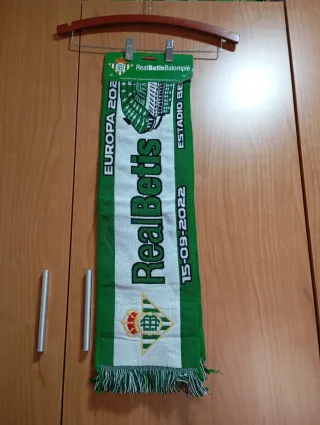 Bufanda oficial del Real Betis Balompié de la temporada Europa 21/22. - Diseño con los colores del equipo. - Escudo del Real Betis. - Fecha 15-09-2022.