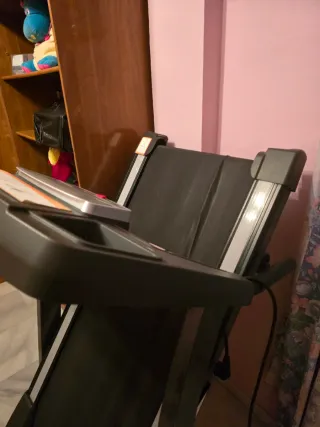Cinta de andar en buen estado. - Diseño moderno y funcional. - Superficie de carrera amplia. - Pasamanos ergonómicos. - multitud de funciones - fácil de recoger y ocupa poco -se deja barata por tener una arruga en la cinta que se puede arreglar.