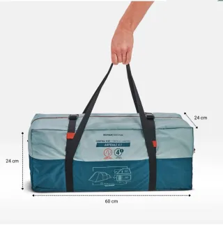 Tienda de campaña de la marca Decathlon, modelo Arpenaz 4.1. Ideal para camping y actividades al aire libre. Se encuentra en buen estado. - Capacidad para 4 personas. - Dimensiones: 240 cm (ancho) x 210 cm (largo). - Peso: 9,8 kg.