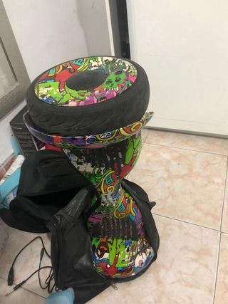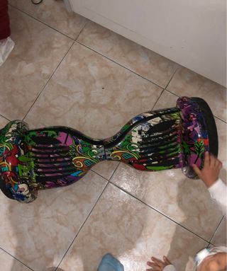Patinete eléctrico con un llamativo diseño de graffiti multicolor. Ideal para desplazamientos urbanos. - Ruedas de goma gordas. - Plataforma antideslizante. - Luces LED decorativas al montarte y al encender.