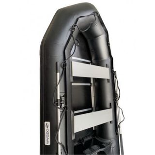 Ozeam 330 con suelo de madera. - Incluye 4 cañeros perfectos para el currican -Tiene un pequeño parche - Embarcación hinchable. - Suelo de madera. - Color negro.