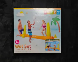 Juego de voleibol hinchable para piscina de la colección Wet Set. - Incluye red, postes y base flotante. - Ideal para jugar en el agua. - Dimensiones: 2.39m x 64cm x 91cm.