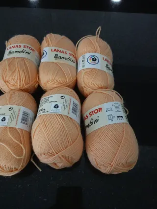 Se venden 6 ovillos de lana Stop Bambini en color salmón. - Composición: 52% Lana Merino, 50% Acrílico. - Peso: 50 gramos por ovillo. - Metros: 220 yardas por ovillo. - Marca: Lanas Stop. - Colección: Bambini. - Certificación Woolmark.