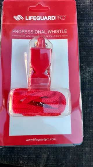 Silbato profesional LifeguardPRO en color rojo, ideal para entrenadores o socorristas. - Incluye cordón de seguridad. - Diseño ergonómico y de alta densidad. - Boquilla de silicona.