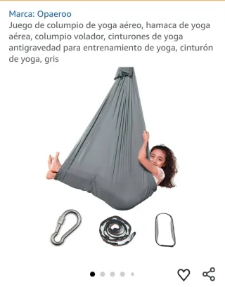Hamaca de tela color lila, ideal para yoga aéreo o relajación. Incluye accesorios para su montaje. - Hamaca de tela. - Correa de sujeción. - Mosquetón de seguridad. - Instrucciones de uso.