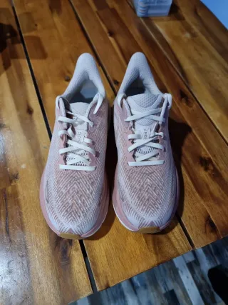 Zapatillas deportivas Hoka para mujer en color rosa. Ideales para correr o entrenar. - Diseño moderno y ligero. - Tejido transpirable. - Suela con buena amortiguación.