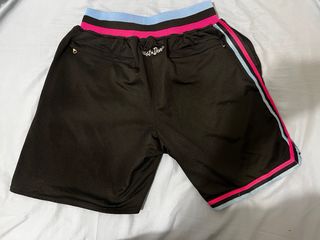 Shorts de baloncesto Miami Heat en color negro. Presentan el logo de Miami en la parte frontal y el logo de HEAT en la pierna izquierda. - Diseño con el logo de Miami en colores azul claro y rosa. - Logo HEAT en blanco. - Detalle del logo del equipo en la pierna derecha. - Cintura elástica con detalles en azul claro y rosa.