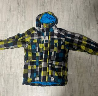 Chaqueta de nieve con un diseño a cuadros llamativo y forro interior azul de borreguito , talla L . Ideal para snow o ski - Diseño a cuadros multicolor. - Capucha integrada. - Bolsillos frontales. y laterales -Ajuste en cintura