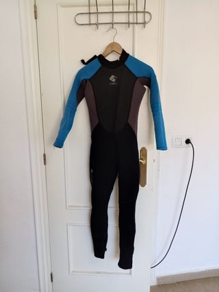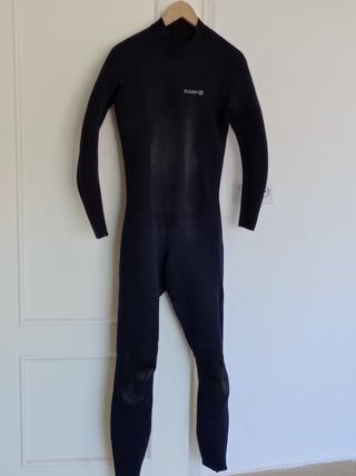 Traje de neopreno largo de la marca Olaian en talla L Adulto (Hombre). Referencia de talla: Probado con 1,75 m y 84 kg, sienta de maravilla. Estado: El traje está casi nuevo, con muy poco uso. Tiene alguna marca superficial de cera del roce con la tabla, pero el neopreno está impecable y flexible. Protección extra: Incluye refuerzos específicos en las rodillas para mayor durabilidad y protección contra impactos y roces. Grosor: 2mm integral. Extremadamente cómodo: se pone muy fácil y te permite moverte con total libertad (ideal para evitar rozaduras, medusas y sol) - Color negro. - Cierre de cuello alto. - Rodilleras reforzadas.