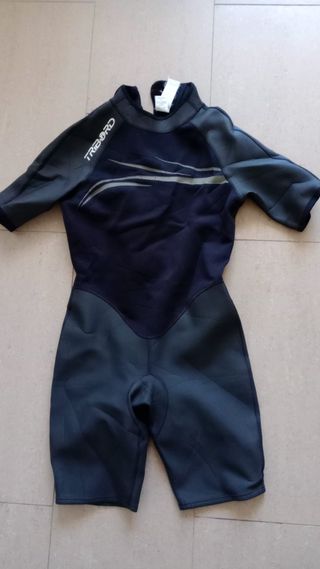 Neopreno corto de la marca Tribord en talla L Adulto (EU 44). Referencia de talla: Mido 1,75m y peso 80kg (complexión media/fuerte) y me queda perfecto. Grosor: 2mm. Ideal para verano, snorkel, paddle surf o kayak. Estado: Muy poco uso. Neopreno flexible y muy resistente. Incluye cremallera con tirador largo para que puedas cerrarlo tú solo sin ayuda. 📦 Envío rápido por Wallapop (Tramo 0-2kg). 🧼 Siempre lavado con agua dulce tras cada uso para cuidar el neopreno. 👀 Echa un vistazo a mi perfil: Tengo más neoprenos disponibles de otras tal - Color principal azul marino con detalles en gris. - Cierre de cremallera en la espalda.