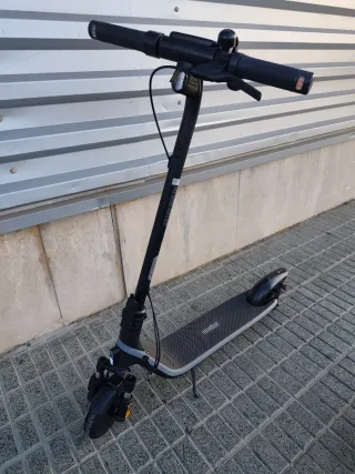 Patinete eléctrico Ninebot. - Pantalla digital con indicadores - Diseño Plegable - Freno de mano - Suspensión - Timbre - velocidad 20 k/h - Modo Sport y peatón - apps de bloqueo nivel de batería - Luz Funciona perfectamente todo, precio en tiendas 279€ Incluye su cargador original, manual, llave. Tienes factura está como nuevo.