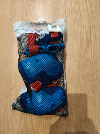 Set de protectores para patinete o bicicleta. Incluye protecciones para codos, rodillas y manos. - Color azul y rojo. - Incluye guantes, rodilleras y coderas. Set de protección Oxelo de Decathlon, talla 2XS, para niñ@s. Sin uso, nuevo a estrenar.