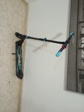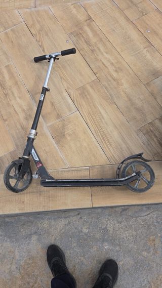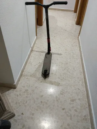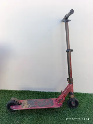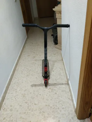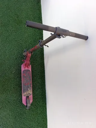 Patinete de estilo urbano con manillar negro y detalles en rojo. - Diseño con gráficos. - Ruedas de goma. - Base antideslizante. (Precio negociable)