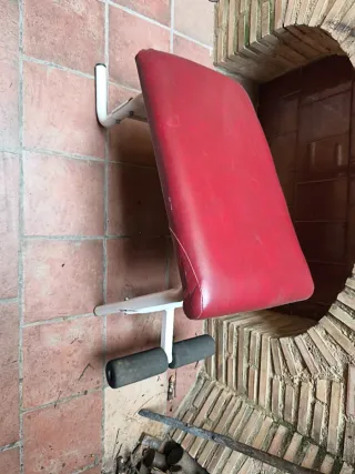 Banco de musculación con acolchado rojo. - Estructura metálica. - Acolchado para piernas.