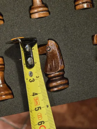 Piezas de ajedrez de madera oscura, con un acabado brillante y detallado. - Diseño clásico de ajedrez. - Material: Madera. - Color: Marrón oscuro. sin caja