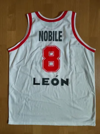 Camiseta de baloncesto del equipo de León, utilizada en partido de la liga LEB. - Marca Joma. - Número 8 en la espalda. - Patrocinadores Ciudad de León y Caja España. Baloncesto, basket, basquet, NBA, FIBA, Euroliga, euroleague, ACB, liga endesa, retro, vintage, matchworn, worn, match worn, game worn, match, Barcelona, Madrid, canotta, Maglia.