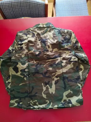 Traje de camuflaje boscoso, ideal para actividades al aire libre. - Diseño de camuflaje verde y marrón. - Cierre frontal con botones. - Dos bolsillos en el pecho. - Puños ajustables. - talla 2P - si compras más se puede rebajar el precio aunque sea tallas distintas