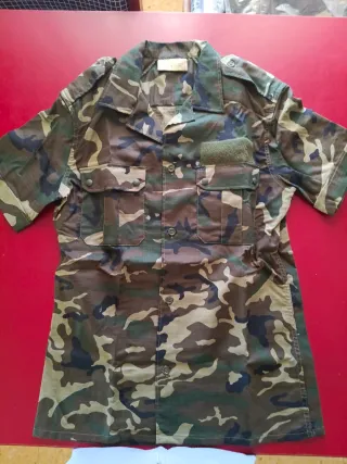 Camisa de camuflaje estilo boscoso, ideal para actividades al aire libre como la caza o el airsoft. Presenta un diseño práctico y funcional. - Estampado de camuflaje boscoso. - Cuello camisero. - Cierre de botones. - Dos bolsillos en el pecho con solapa y botón. - Hombreras con botón. Talla 2