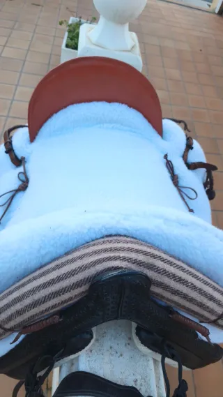 Montura española de fibra nueva a estrenar se vende completa con pecho petral, cincha, mantilla, estrillos y funda diseñada para ofrecer comodidad y durabilidad. - Material de fibra resistente. - Diseño tradicional español.
