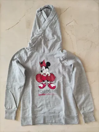 Sudadera gris con estampado de Minnie Mouse del Sevilla Fútbol Club. - Diseño con Minnie Mouse. - Texto Follow Me Sevilla Fútbol Club. - Talla M.