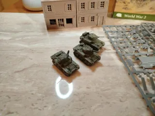 Se vende un pelotón de 5 tanques Stuart, trees de ellos montados y dos en matriz. para Flames of War. Incluye las piezas para su montaje. De Plástic soldier.