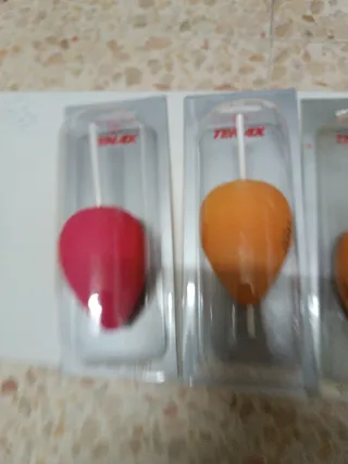 Lote de tres flotadores de pesca de la marca TENAX. Son de color rosa y naranja. - Modelo: 6050 GRS70/7 - Incluye tres unidades.