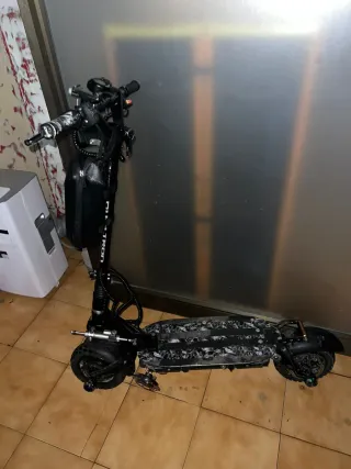 Patinete eléctrico con un diseño llamativo y luces LED. - Diseño con estampado. - Luces LED integradas en la base y el manillar. - Bolsa de transporte negra. - Ruedas delanteras y traseras. 130 km/h Doble motor