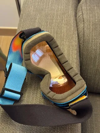 Gafas de esquí Firefly - Lente naranja. - Correa azul con rayas blancas. - Detalle de logo en la correa.