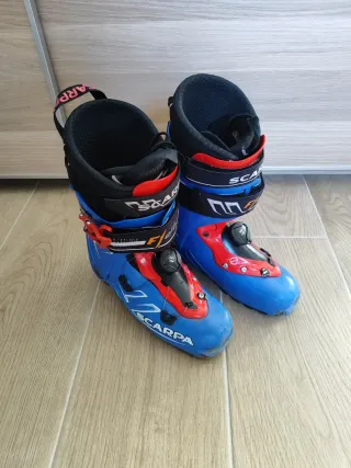 Botas de esquí de montaña Scarpa F1 Evo en talla 28 - Color azul y rojo. - Cierres de hebilla y BOA. Skimo, randonee, esquí de montaña