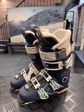 Botas de esquí Salomon QST Pro 90 TR W en talla 24.5. Incluyen plantillas Thermo Footprint y suelas. - Modelo QST Pro 90 TR W. - Talla 24.5. - Incluye plantillas Thermo Footprint. - Incluye suelas.