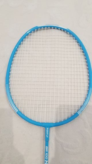 Raqueta de bádminton para niños de la marca DERFLY (Decathlon), modelo BR 100 KID, en color azul. Con signos de uso, pero en muy buen estado para empezar a aprender a jugar al bádminton #badminton #raqueta #derfly #BR100KID