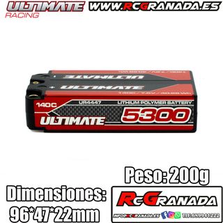 Batería Lipo Ultimate de Grafeno HV Shorty. - Capacidad: 5300mAh - Voltaje: 7.6HV - Diseño: Shorty - Peso: 200g - Dimensiones: 96*47*22mm Mugen, awesomatix ,mst,Kyosho, xray, associated, losi, Arrma, Corally,hpi, lrp, tekno, traxxas,Tamiya,sanwa,futaba,sworkz,Hudy,yokomo,reved,Absima,skyrc,hobbywing, srt, hsp, hyper, hobao, Crawler rc, Coche radiocontrol, Coche teledirigido, ftx,Brushless, fastrax, axial, , hotbodies,PROCIRCUIT , ULTIMATE , ULTIMATE RACING