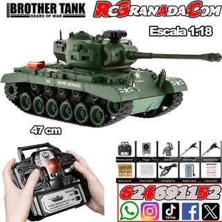 Toma el control del campo de batalla con el tanque Brother USA M26 Pershing "Snow Leopard", un modelo a control remoto altamente detallado y potente de uno de los tanques estadounidenses más formidables de la Segunda Guerra Mundial. Escala 1:18.Sistema de radio de 2,4 GHz.Rotación de torreta de 350° Elevación de cañón de 30°, Motor dual rápido de 3 velocidades. 12 Amortiguadores independientes. Mugen, awesomatix ,mst,Kyosho, xray, associated, losi, Arrma, Corally,hpi, lrp, tekno, traxxas,Tamiya,sanwa,futaba,sworkz,Hudy,yokomo,reved,Absima,skyrc,hobbywing, srt, hsp, hyper, hobao, Crawler rc, Coche radiocontrol, tanque teledirigido,