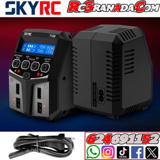 CARGADOR SKYRC T100 DUO LIPO 2-4S 2X50W 240V AC SkyRC T100 es un cargador de doble canal con dos circuitos independientes que puede cargar baterías de diferentes químicas (LiPo / LiFe / Lilon / LiHV / NiMH / NiCd / Pb) simultáneamente. Mugen, awesomatix ,mst,Kyosho, xray, associated, losi, Arrma, Corally,hpi, lrp, tekno, REVED,traxxas,Tamiya,sanwa,futaba,sworkz,Hudy,yokomo,reved,Absima,skyrc,hobbywing, srt, hsp, hyper, hobao, Crawler rc, Coche radiocontrol, Coche teledirigido, ftx,Brushless, fastrax, axial,Procircuit , bolsa , maleta , OGO , ULTIMATE , ULTIMATE RACING