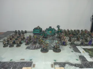 Ejército Death Guard Warhammer 40K completo (Conquest + extras) Se vende ejército completo de Death Guard procedente de Warhammer Conquest, ampliado con más miniaturas. Incluye: Typhus Lord of Contagion Malignant Plaguecaster Noxious Blightbringer Plague Surgeon Biologus Putrifier Foul Blightspawn Lord Felthius + Tainted Cohort 16 Plague Marines + Champion 32 Poxwalkers 10 Cultistas del Caos Foetid Bloat-Drone Myphitic Blight-Hauler Plagueburst Crawler Chaos Rhino Ejército amplio, listo para jugar, con gran variedad de unidades.
