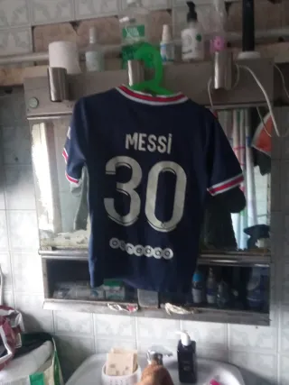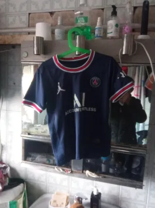 Camiseta de fútbol del Paris Saint-Germain - Color azul marino. - Diseño con detalles en rojo y blanco en cuello y mangas. - Logo de la marca deportiva en el pecho. - Escudo del club en la manga. Hago trueque por guitarra eléctrica