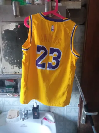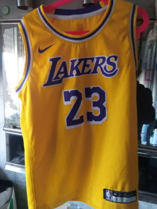 Camiseta de baloncesto de Los Angeles Lakers, talla M. Diseño clásico del equipo. - Color amarillo. - Número 23. - Logo de Nike hago trueque por guitarra eléctrica