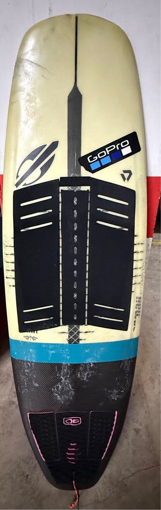Tabla de kitesurf con diseño moderno y funcional. - Superficie antideslizante. - Detalle de logo GoPro. - Diseño con líneas azules y negras.