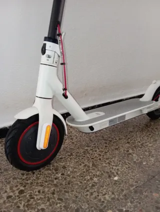 Patinete eléctrico de color blanco, ideal para desplazamientos urbanos. Su diseño es moderno y funcional. - Rueda delantera y trasera con guardabarros. - Plataforma antideslizante. - Soporte para teléfono - Gancho para bolsas - reflectores laterales - ruedas nuevas 9" Está bien cuidado tira muy bien motor 300w sin ruidos raros ni crujidos en el manillar está perfecto