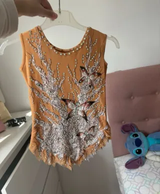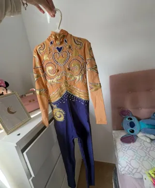 Vendo maillot de gimnasia rítmica con cristales colocados a mano. Por el paso del tiempo puede faltar algún cristal, pero en general está en muy buenas condiciones, bien cuidado y listo para seguir brillando en el tapiz ✨ 📏 Talla / Medidas: No indico edad porque este tipo de maillots se adapta mucho al cuerpo. Si estás interesad@, te paso las medidas exactas sin problema para que compruebes si encaja bien. 📩 Interesad@s: Escríbeme sin compromiso y te doy más fotos, medidas o cualquier detalle que necesites. de gimnasia rítmica con un diseño vibrante y detallado. Perfecto para competiciones -