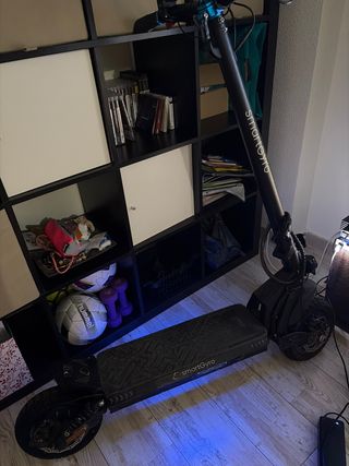 Patinete eléctrico Smartgyro Crossover Dual Max en color negro. Diseñado para ofrecer una experiencia de movilidad urbana y deportiva. - Doble motor para mayor potencia. - Ruedas anchas para mejor agarre. - Luces LED integradas. - no tiene guarda barros - le falta una pieza lateral de la parte delantera - las manetas de freno estan un poco rotas En conclusión esta bien el precio es negociable