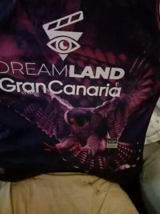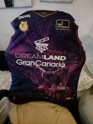 Camiseta oficial del equipo de baloncesto Dreamland Gran Canaria. - Diseño morado con detalles en degradado. - Logo de Spalding y Liga Endesa. - Ilustración de un ave rapaz en la parte frontal. Hago trueque por guitarra eléctrica